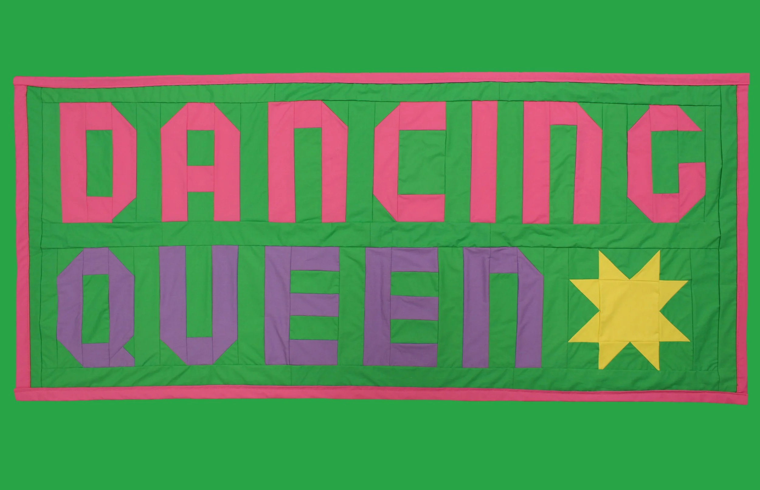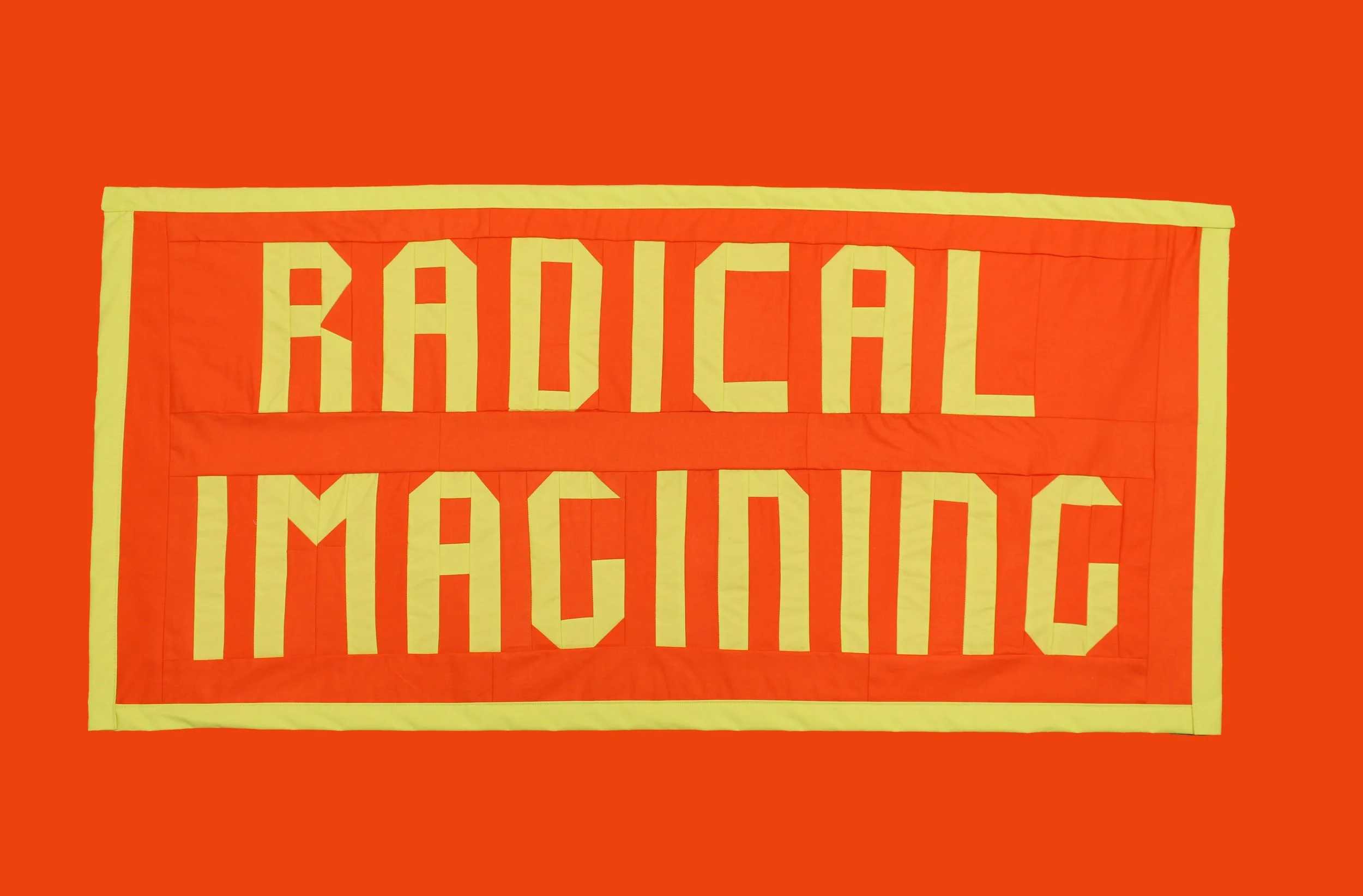 Reflecting upon this tumultuous, yet unique time in which we find ourselves, Liberations explores notions of healing through pleasure, queerness and imagination. Inspired by hand-written protest signs, these textile flags aim to activate a sense of liberation and belonging in the body and Self, through calls of joy and revelation. Quilted together to form bold and colorful statements, the flags simultaneously act as an invitation to go beyond what we know, and push for what we need more of, channeling an essence of delight, embodiment and hope.
