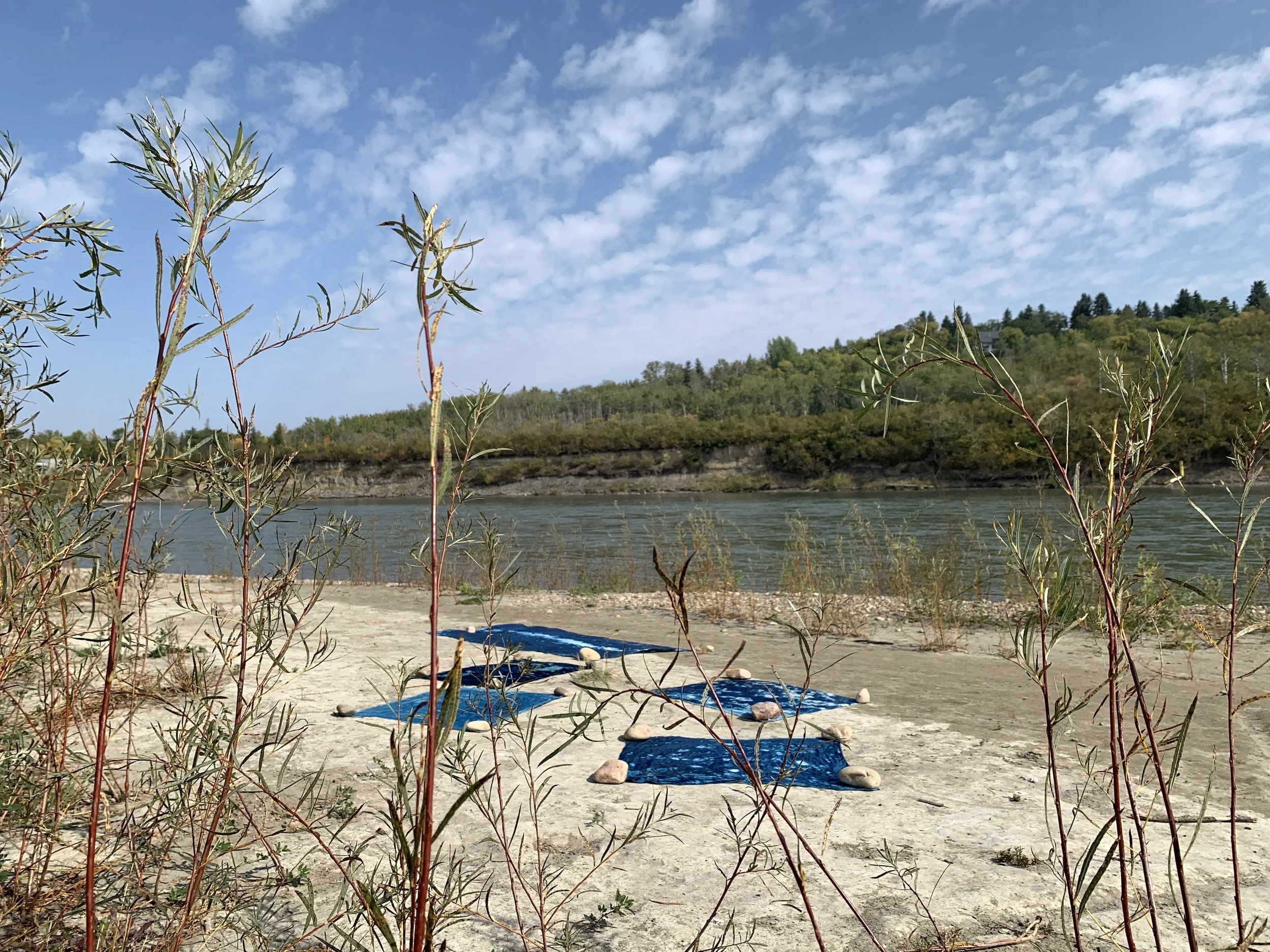 Further reflecting upon the ways in which love and grief take the shape of water, these works were created in direct communion with nature along two distinct shorelines. The first was formed by the river valley along the North Saskatchewan River in the Beaver Hills region of amiskwacîwâskahikan (Edmonton). The second was shaped by the Pacific Ocean on the Sunshine Coast in British Columbia. Both places hold significant meaning for the artist’s personal journey through loss, love, and remembrance.