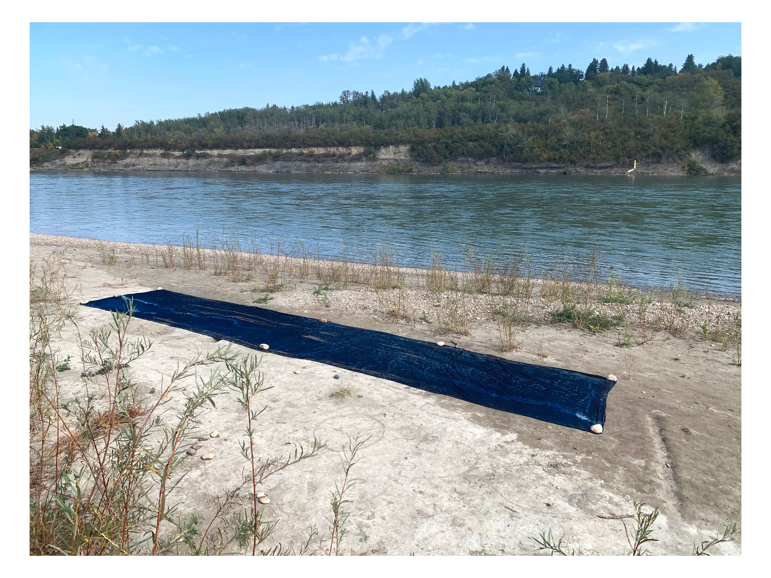 Cyanotype on handwoven mulberry silk, made in communion with the North Saskatchewan River
